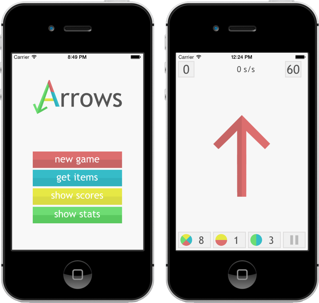 This is a game that consists of four simple movements: up, down, left and right. The goal is to perform the given movement as fast as possible. When you make a mistake (perform the wrong movement) you lose a life, after three lifes it’s game over. Three different types of power-ups help you to reach a new highscore.