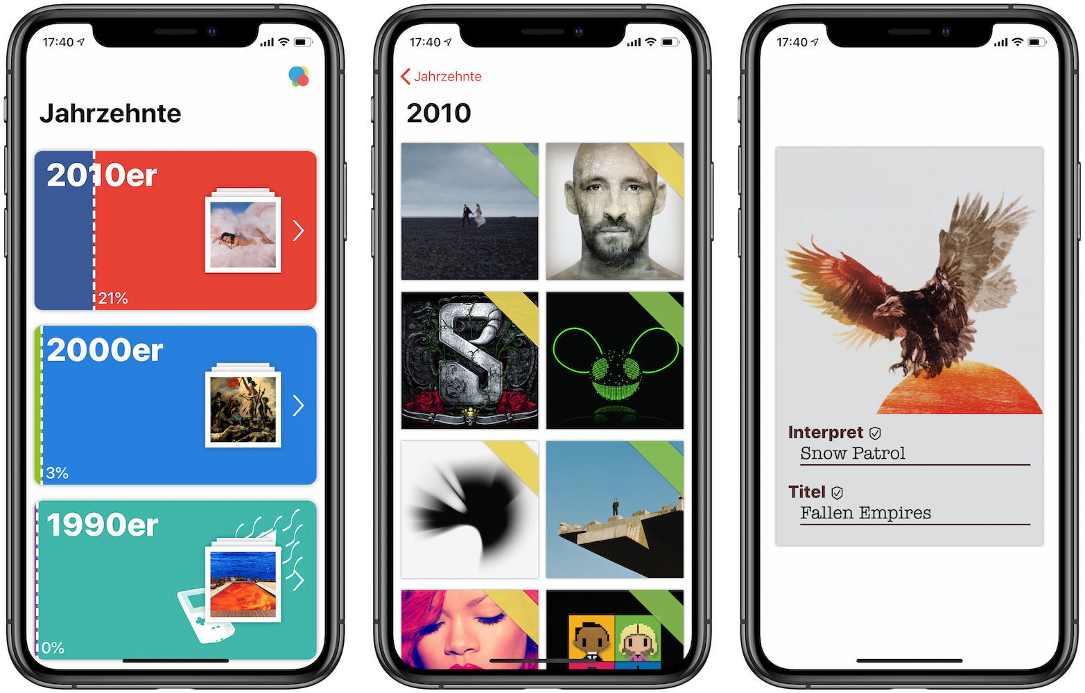 CoverQuiz was my first app in the AppStore. The idea for this app came from the, at the time very popular, genre of “Logos Quizzes”. These were simple quizzes where you were presented the logo of a company, where the company name was removed and you had to guess the name of the company. A very simple concept that could be very fun. At the same time I was curating my at the time iTunes music collection by adding album covers to all of my music. I always liked album covers and think that they can help to set the mood for a song or album. The third fitting coincidence was, that at that time we were working with image editing software in my art class in school. At one point we learned how to remove unwanted objects from images, for example a crane from an otherwise nice photo.