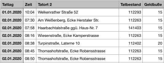 This is worsened by the fact, that the personel from the “Ordnungsamt” does not seem to adhere to any standards regarding this field. Sometimes there is a street name with a house number, sometimes a combination of two streets (intersection), a street name and a street lamp number, or even a dscription such as “across the bakery”.